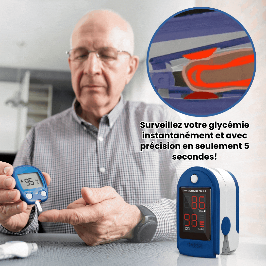 GlucoClick™ Oxymètre de pouls | Gérez votre diabète 24h/24, sans aiguilles!